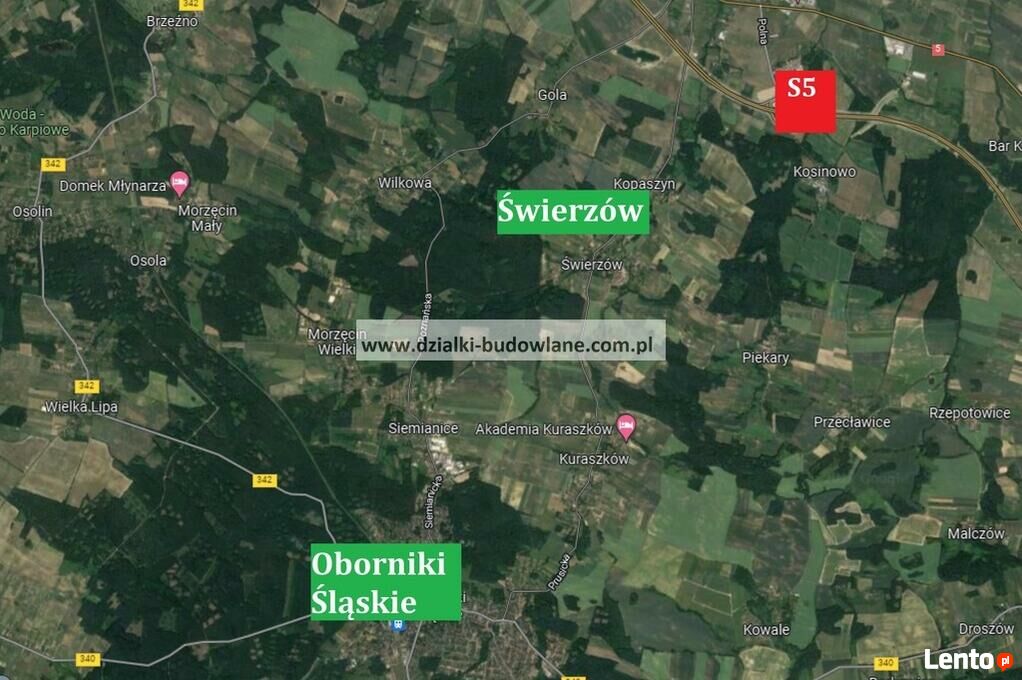 Działka budowlana w Świerzowie koło Kuraszkowa, za ObornikamiŚląskimi.
