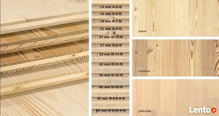 Płyta 3-warstwowa Masywna 19x1250x5000mm KLASA BD Grubość 19 mm